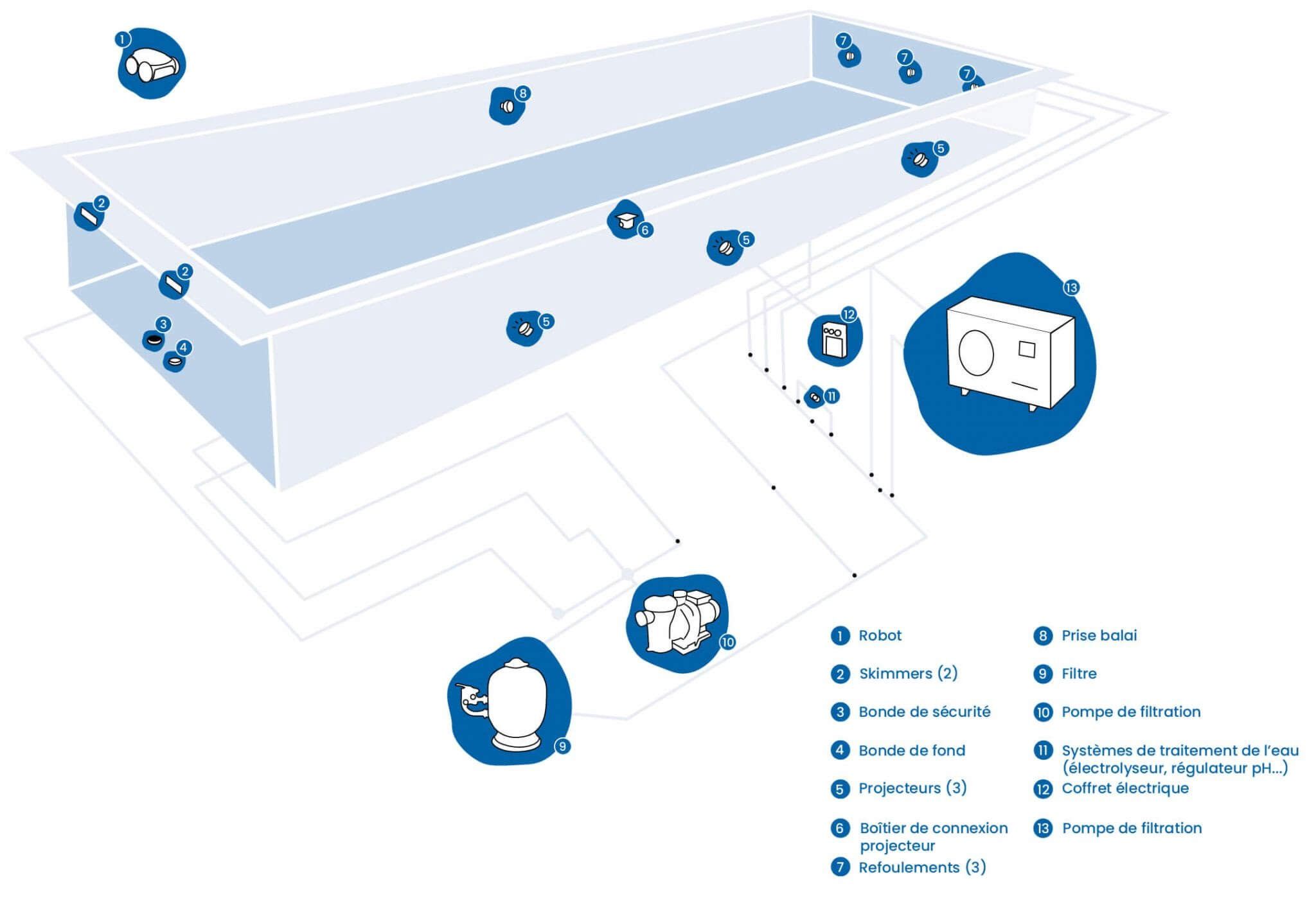 Une piscine creusée ne se résume pas à un bassin d’eau. Pour garantir une eau propre, saine et agréable à la baignade, elle repose sur un système de filtration complet. Ce dispositif regroupe plusieurs équipements essentiels qui assurent la circulation, le nettoyage et le traitement de l’eau au quotidien.